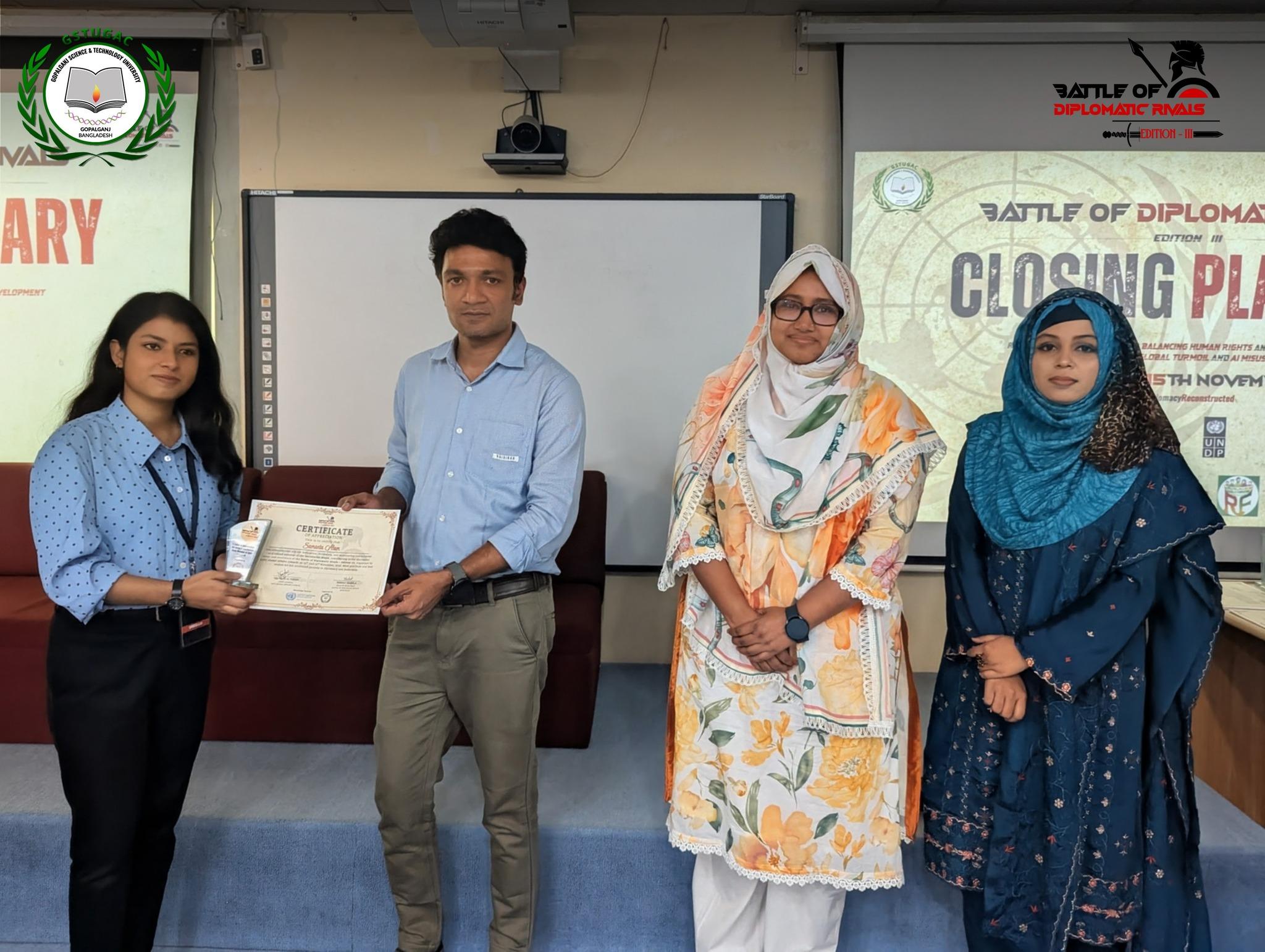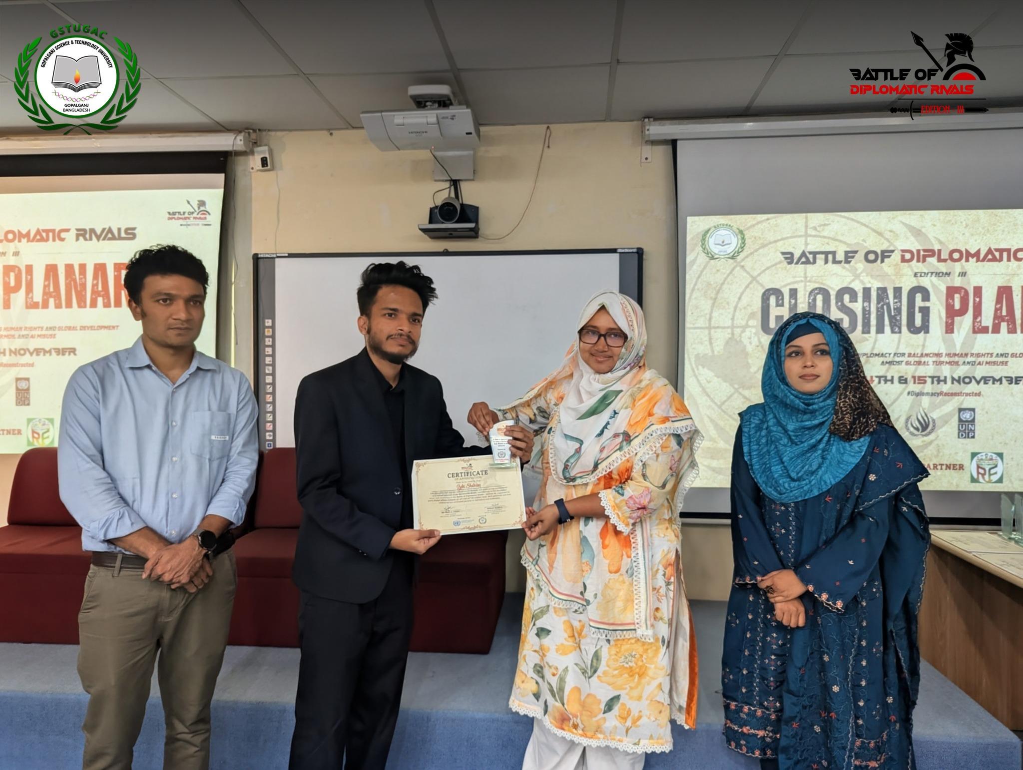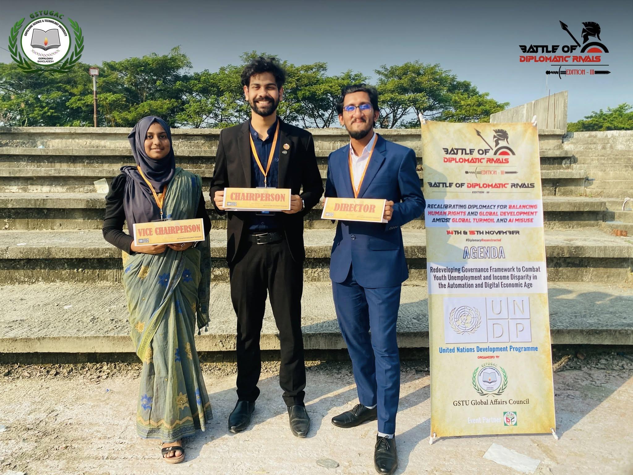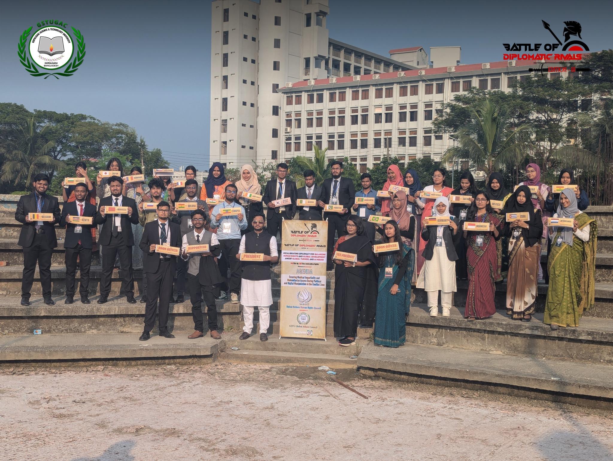 The GSTU Global Affairs Council (GSTUGAC) is delighted to have you join us for Edition-III of ‘Battle of Diplomatic Rivals’, one of the most epic battles in the southern region. This time BDR'25 is focusing on the theme “Recalibrating Diplomacy for balancing human rights and global development amidst global turmoil and AI misuse”. Due to the necessity of balancing ethical governance and sustainable development in the era of global conflicts, human rights violations, and the rapid rise of AI misuse.